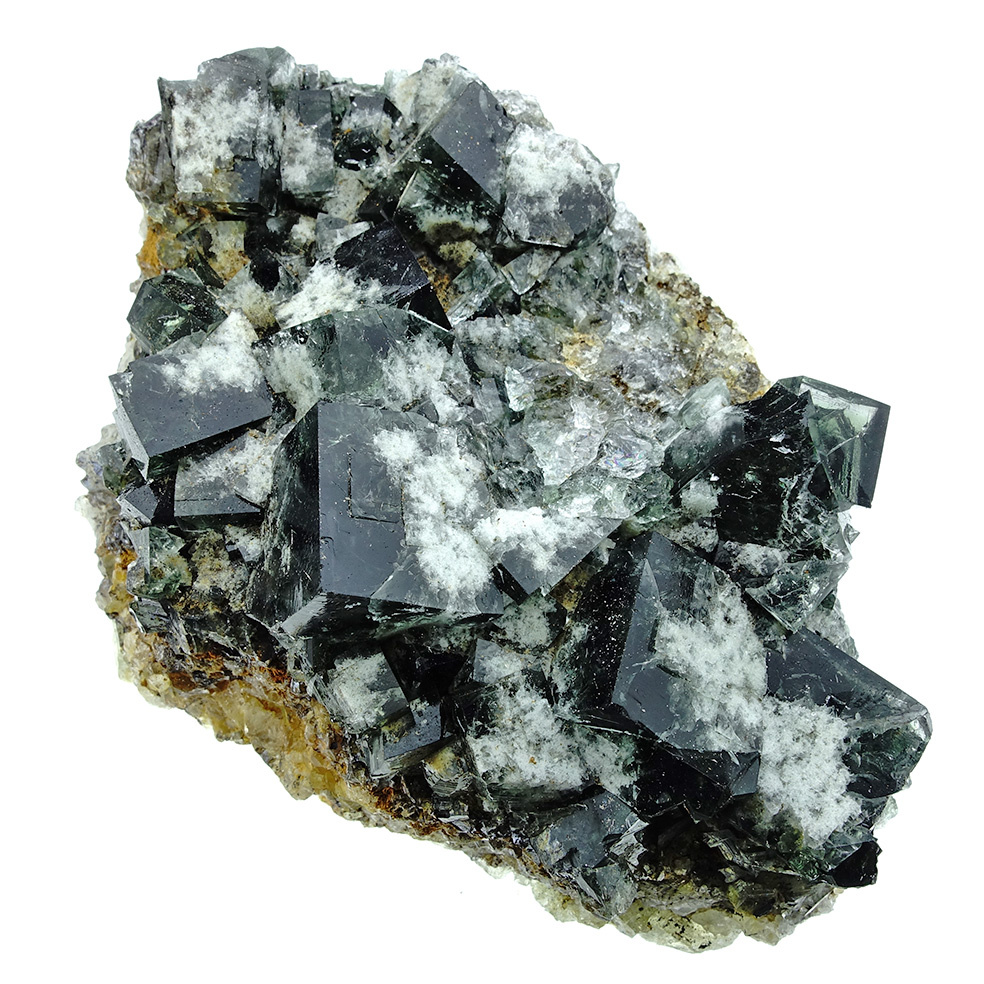 Prachtige fluoriet uit de 'Supernova'-pocket in de Diana Marian mijn in Co. Durham, Engeland. Deze fluoriet kenmerkt zich door de donkergroene met witte fluorietkristallen die het geheel een astronomisch uiterlijk geven. Spectaculair is de kleurverandering in daglicht: deze kristallen verkleuren in hun geheel van donkergroen naar diep paars, zelfs bij heel weinig licht! Een plaatje in zowel daglicht als kunstlicht!