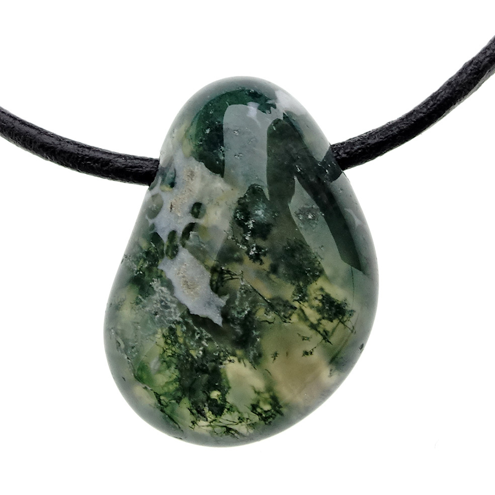 Agaat is een variant van van kwarts en een subvariëteit van chalcedoon, deze kan zowel troebel als doorschijnend zijn. Deze mooie getrommelde mosagaat is afkomstig uit India. De groene kleur wordt veroorzaakt door de insluiting van dendrieten.