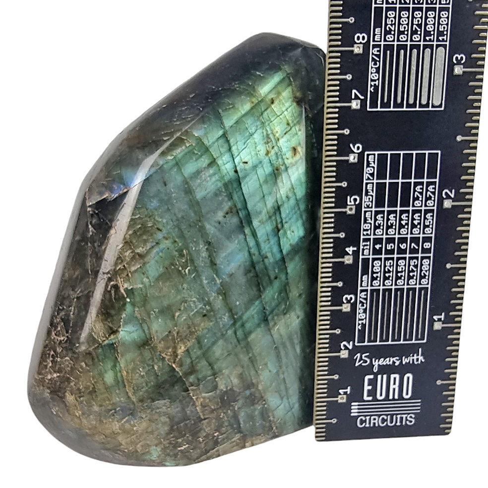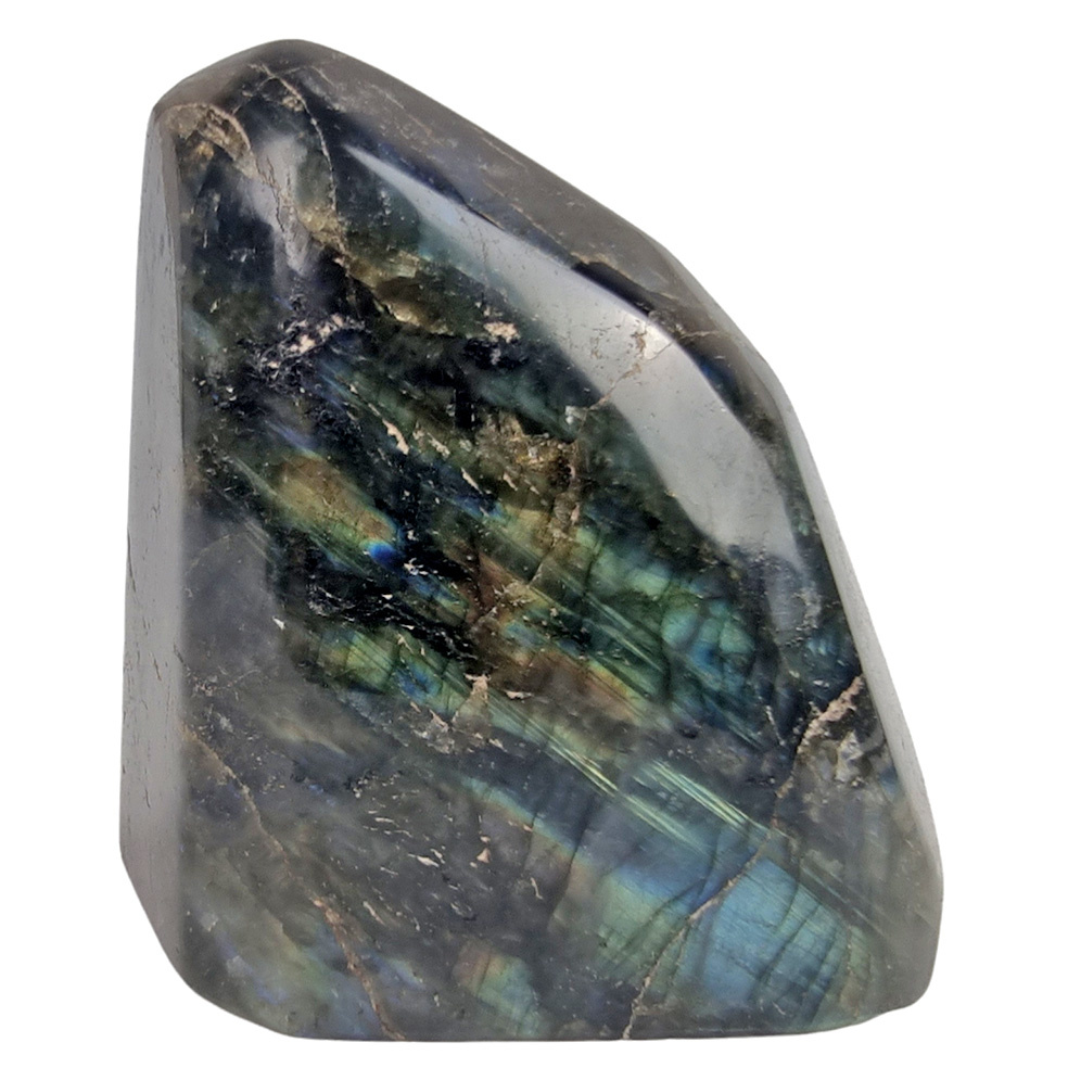 Labradoriet te koop met prachtige groene en blauwe kleuren uit Madagaskar. Prachtig mineraal met veel kleur nuances