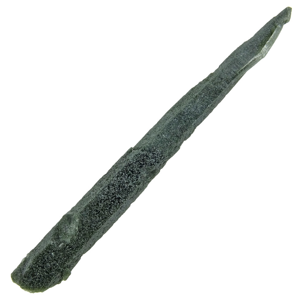 Dit kristal van chlorietkwarts is gevonden in Peru. De naam lodoliet komt uit het Spaans en betekend ‘moddersteen’. Het is niet duidelijk of dit te herleiden is op de insluitsels van de kwarts of juist aan de omgeving waarin de steen wordt gevonden.