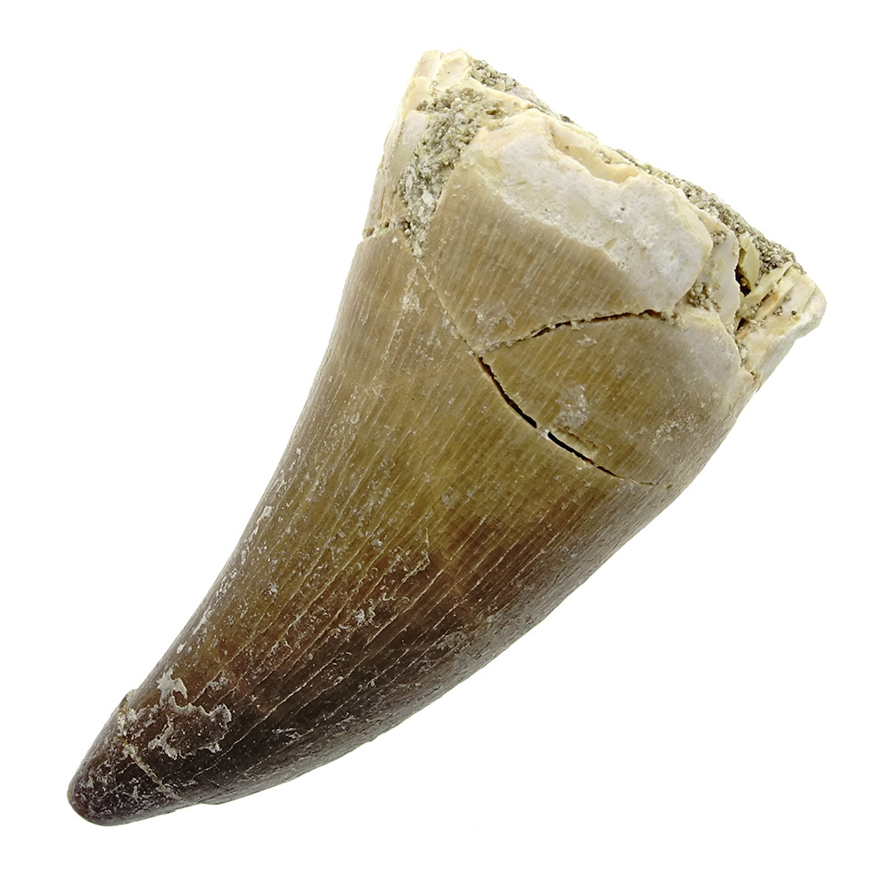 Een mooie tand van de Mosasaurus, een sauriër die in het late Krijt (71,3-65,4 mln jaar geleden) de zeeën bevolkte.