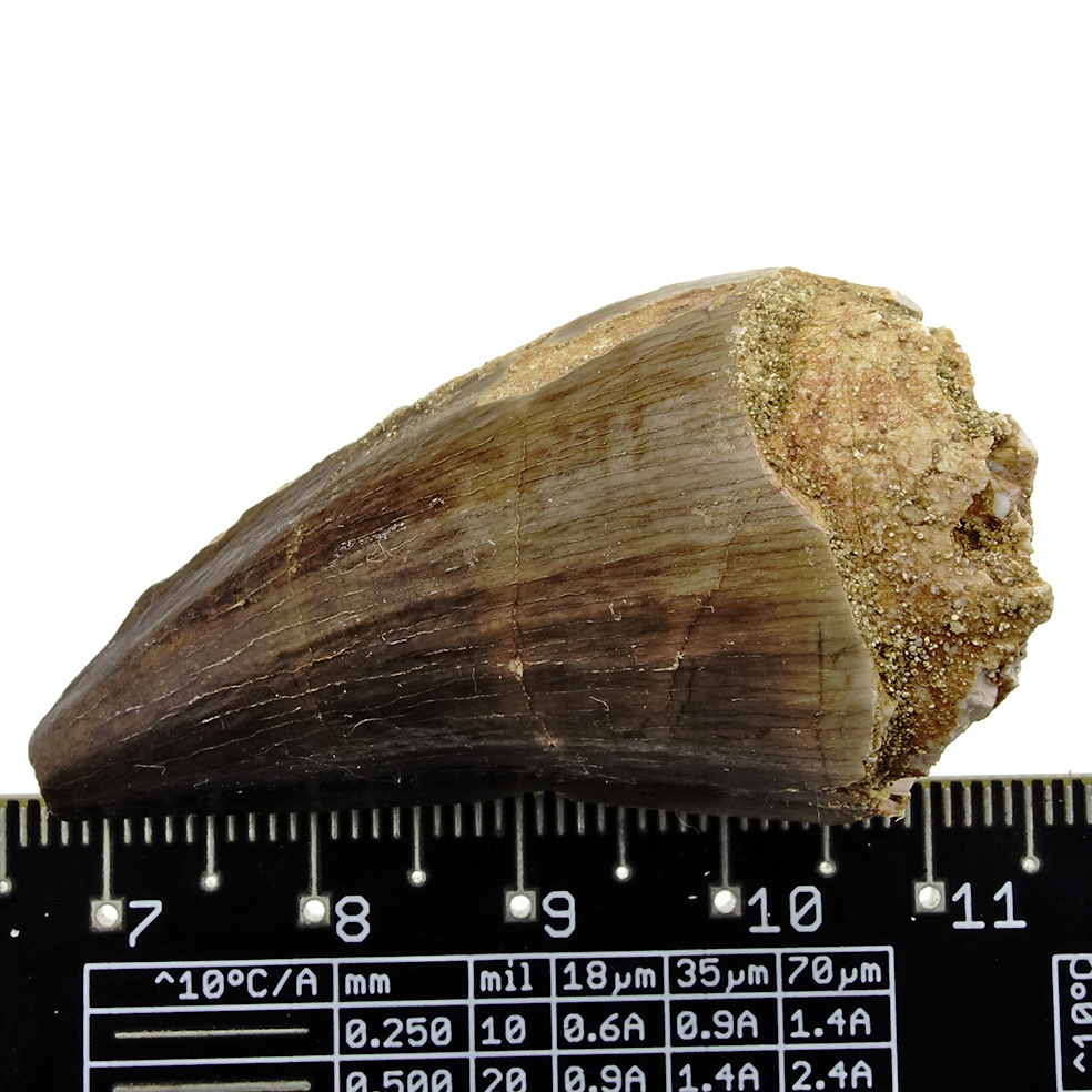 Een mooie tand van de Mosasaurus, een sauriër die in het late Krijt (71,3-65,4 mln jaar geleden) de zeeën bevolkte.