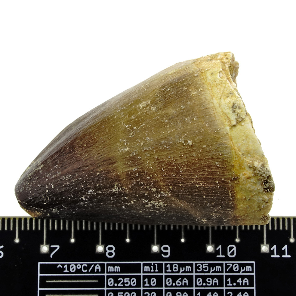 Een mooie tand van de Mosasaurus, een sauriër die in het late Krijt (71,3-65,4 mln jaar geleden) de zeeën bevolkte.