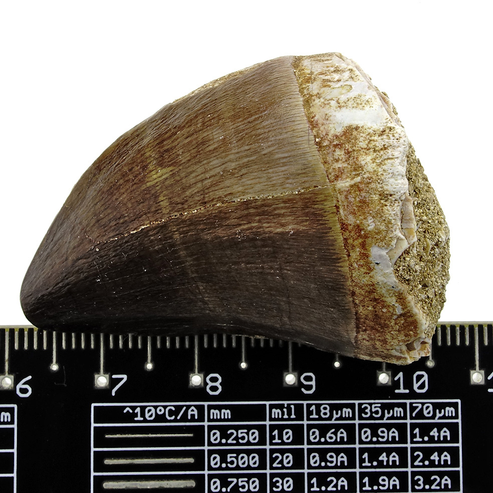 Een mooie tand van de Mosasaurus, een sauriër die in het late Krijt (71,3-65,4 mln jaar geleden) de zeeën bevolkte.