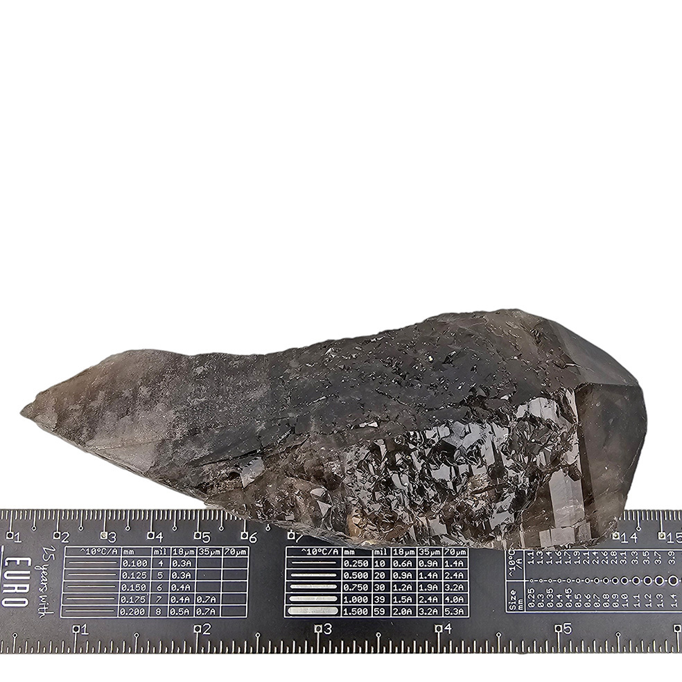Diepdonker rookkwarts kristal afkomstig van de berg Malosa in Zomba, Malawi. Het kristal heeft een natuurlijke intens donkere kleur en bevat sporen van aegirien, een kristal dat bekend staat om zijn sterke aardende eigenschappen.