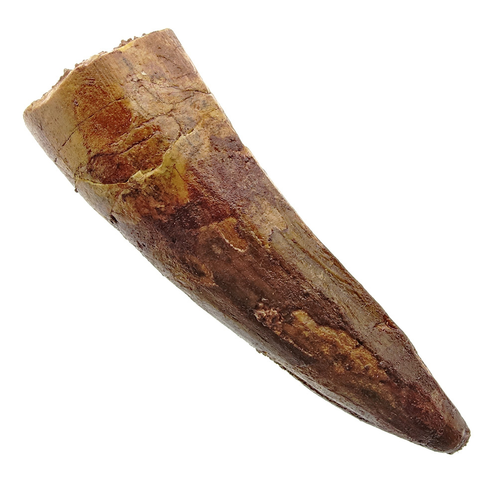 Fraaie tand van het grootste landroofdier dat ooit geleefd heeft. De spinosaurus kon wel 15 meter lang worden! Dat is 3 meter langer dan de T-rex. Recent onderzoek heeft uitgewezen dat de Spinosaurus ook een prima zwemmer was, dat zou ook de enorme kam op de rug van het dier verklaren.